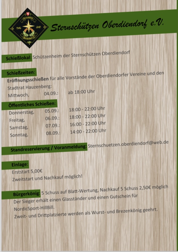 Auf Euren Besuch freuen sich die Sternschützen Oberdiendorf im Schützenheim der Gaststätte Ritzer.